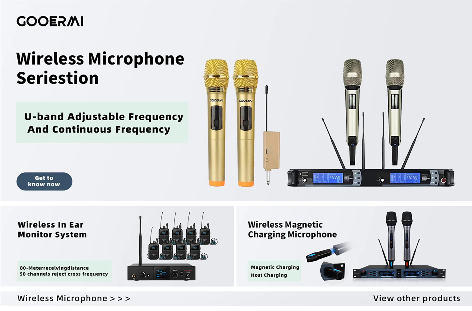 Gooermi profesyonel 2 kanallı kablosuz el mikrofonu sistemi şarj edilebilir Karaoke düğün DJ 2nd için dinamik mikrofonlar